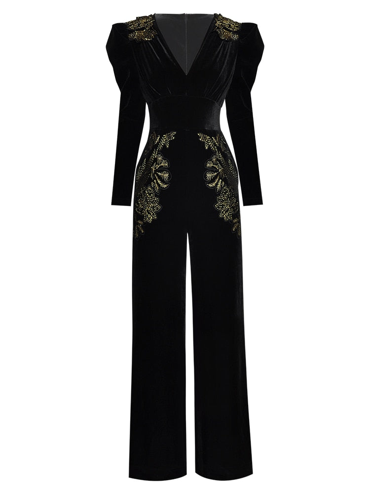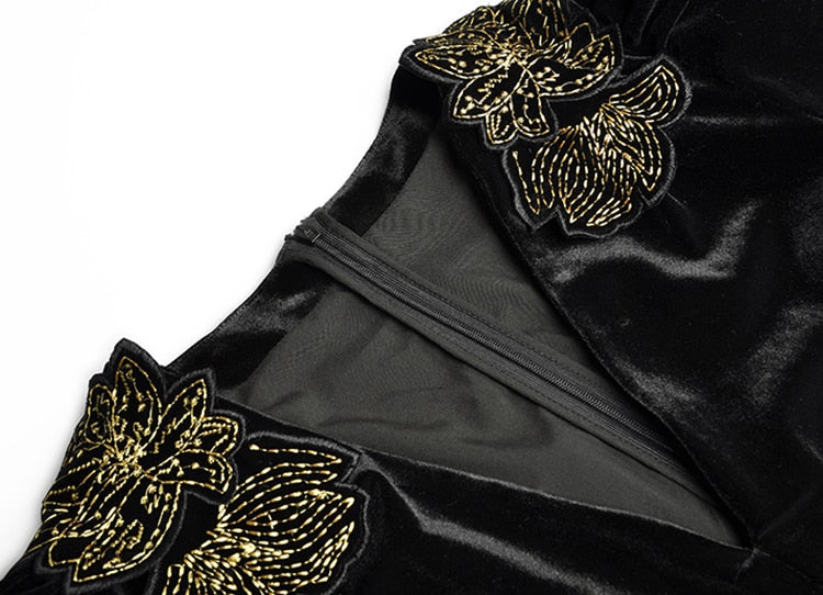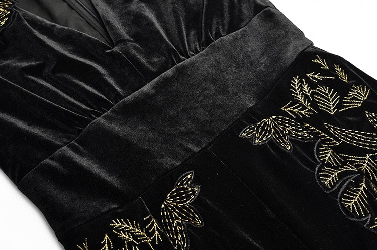 Featuring a luxurious polyester-velvet fabric composition, open v-neck collar, embroidered floral accents and intricate construction throughout. Turn heads on sight in one of this season’s most coveted pieces!